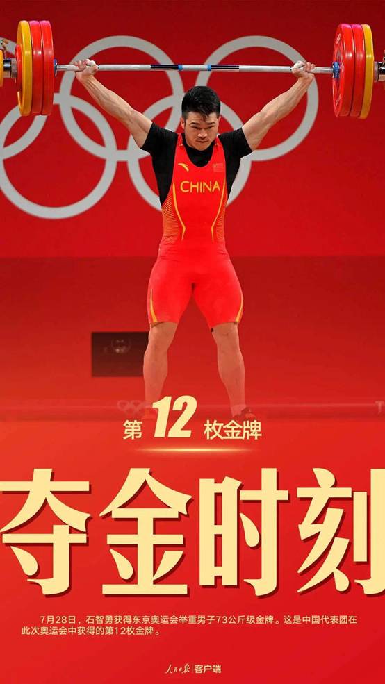 7月28日,在东京奥运会男子73公斤级举重比赛项目中,体院学子石智勇摘得奥运金牌并打破世界纪录,为中国代表队再添一枚金牌。